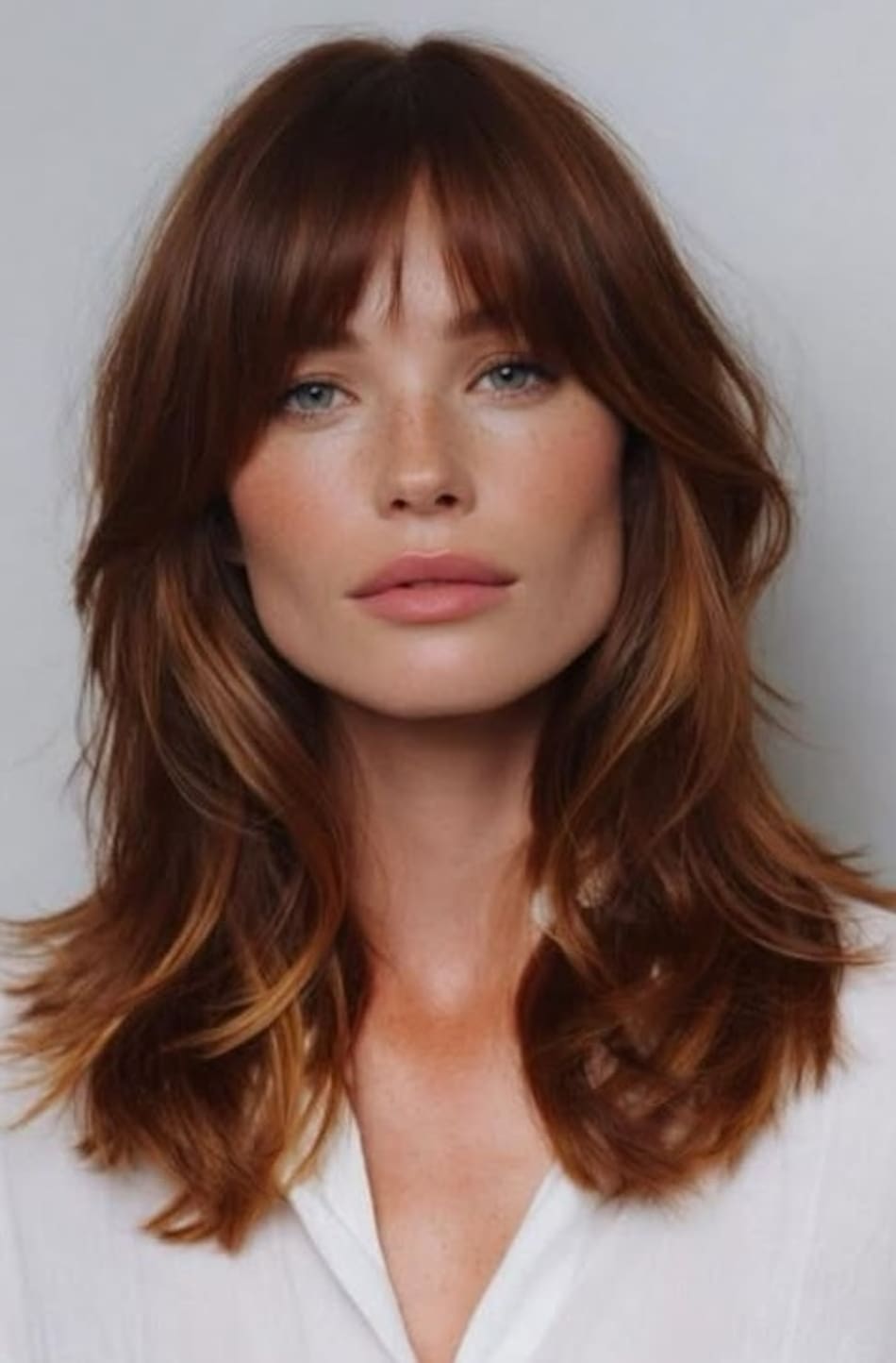 El flequillo cortina sigue siendo un infaltable y en 2026 se reafirma como el aliado perfecto de la media melena. Inspirado en los años 70, enmarca el rostro de forma suave y aporta un aire romántico sin esfuerzo. Suele llevarse largo, abierto al medio o levemente hacia un costado, integrándose de manera natural con el resto del pelo.