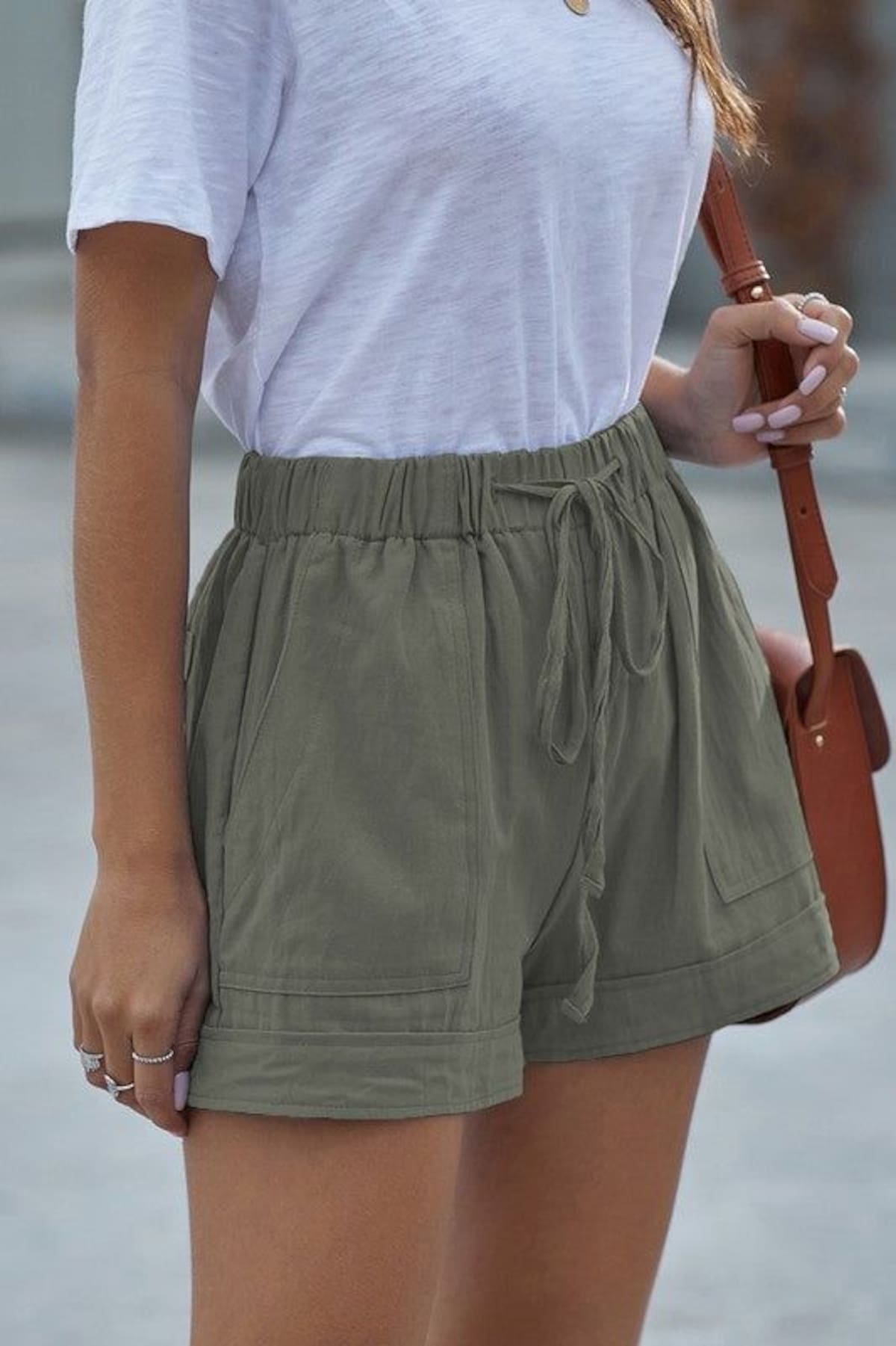 Para un look de día urbano y canchero, las bermudas de sastrería en tonos neutros como beige, gris claro o camel se combinan con un top al cuerpo o una musculosa básica blanca. Un blazer liviano oversize suma estructura sin perder frescura, mientras que las zapatillas blancas o sandalias planas completan un outfit cómodo y moderno, ideal para recorrer la ciudad en verano.