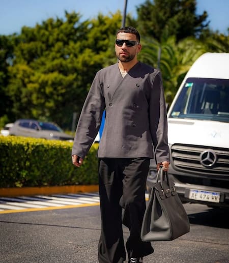 Otro de los más controversiales fue Nicolás Otamendi, ya que llegó con un saco cruzado gris, un pantalón amplio, anteojos de sol y un accesorio que llamó la atención: un bolso amplio a tono. Algunos en las redes lo compararon con un modelo, mientras que otros, criticaron su look.