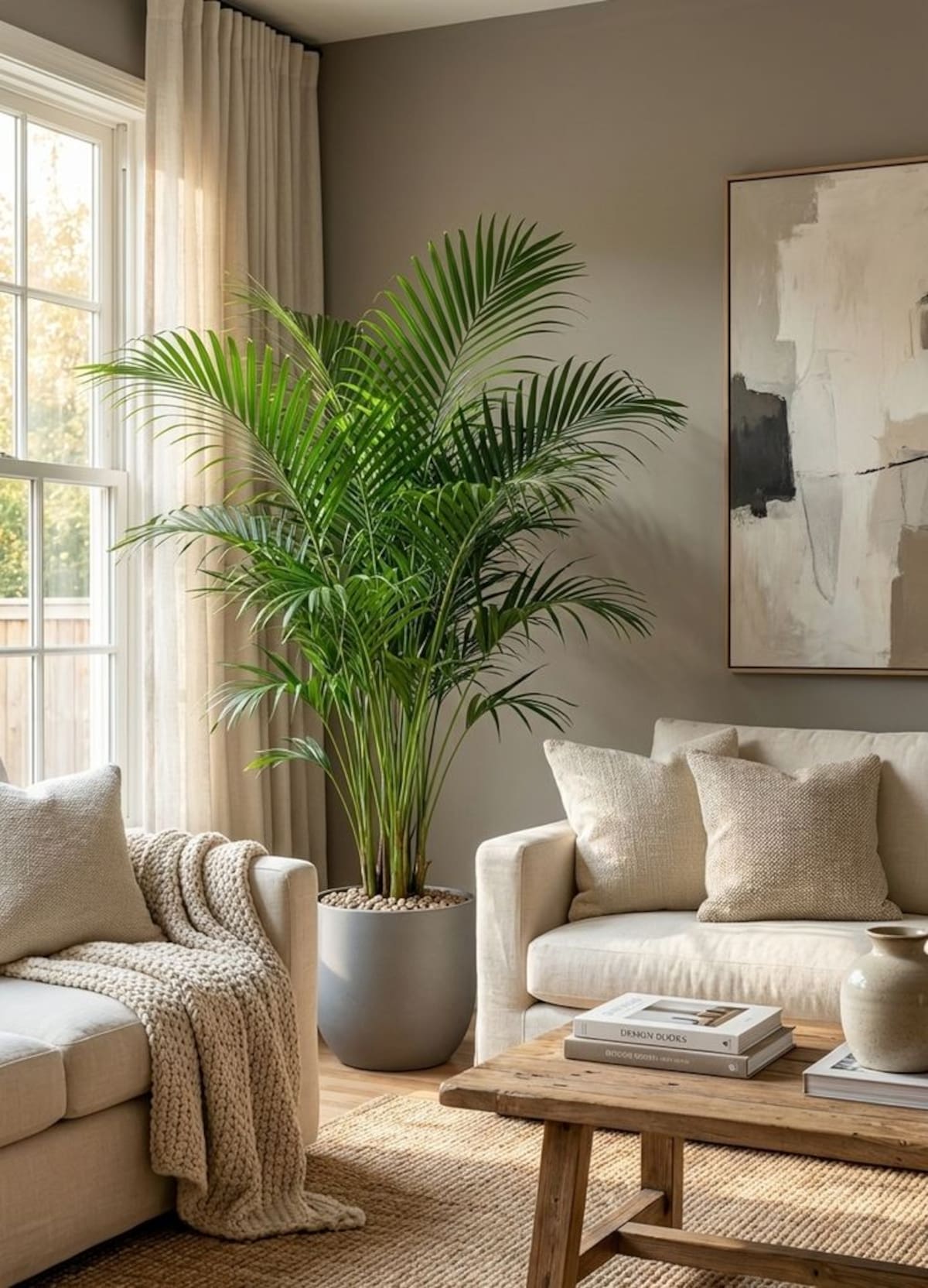 De estilo más escultural, esta planta aporta altura y un aire sofisticado. Es ideal para livings amplios y bien iluminados. Sin embargo, tiene una pequeña contra para livings algo reducidos: necesita espacio para crecer, por lo que conviene ubicarla en zonas despejadas.