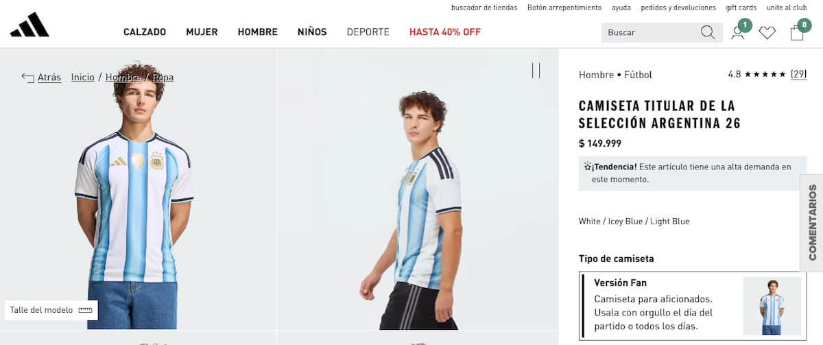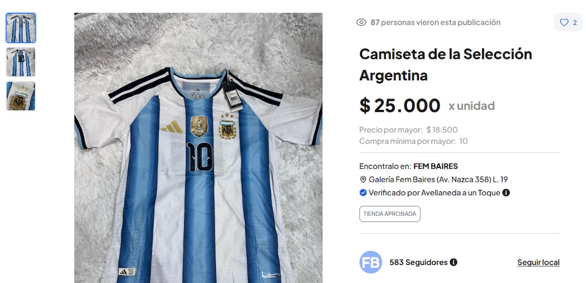 - La Oficial: en los locales de los principales shoppings (como Alto Palermo o Abasto) y en el AFA Shop, la versión “Fan” cuesta $149.999, mientras que la “Authentic” (idéntica a la que usan los jugadores) alcanza los $219.999.