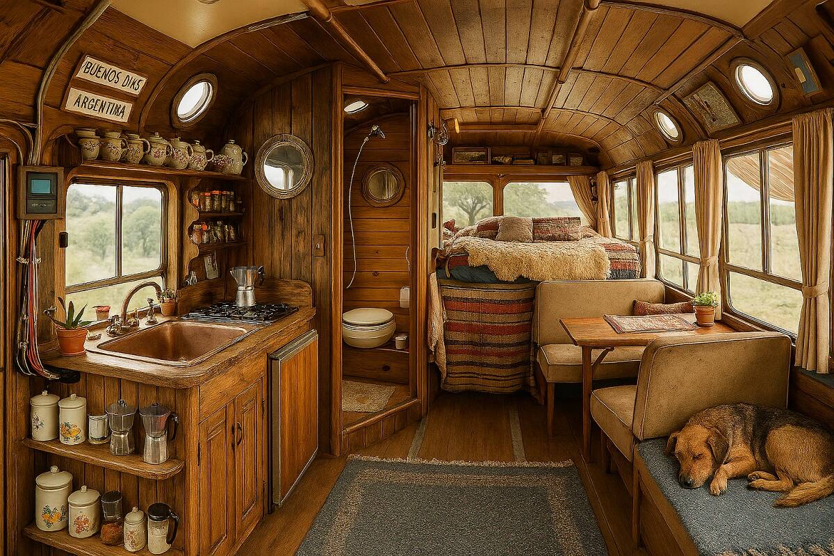 El proceso arranca con una transformación total. Se desmantela el interior -adiós a los asientos, revestimientos y sistemas eléctricos originales- y empieza la etapa más creativa. Aislamiento térmico, instalación de agua y electricidad (muchas veces con paneles solares) y el diseño de espacios que, aunque reducidos, buscan replicar la lógica de cualquier hogar. Cocina, baño, cama y hasta un pequeño living: todo encuentra su lugar. En algunos casos, el ingenio va más allá e incluye bibliotecas, estufas o rincones de trabajo.