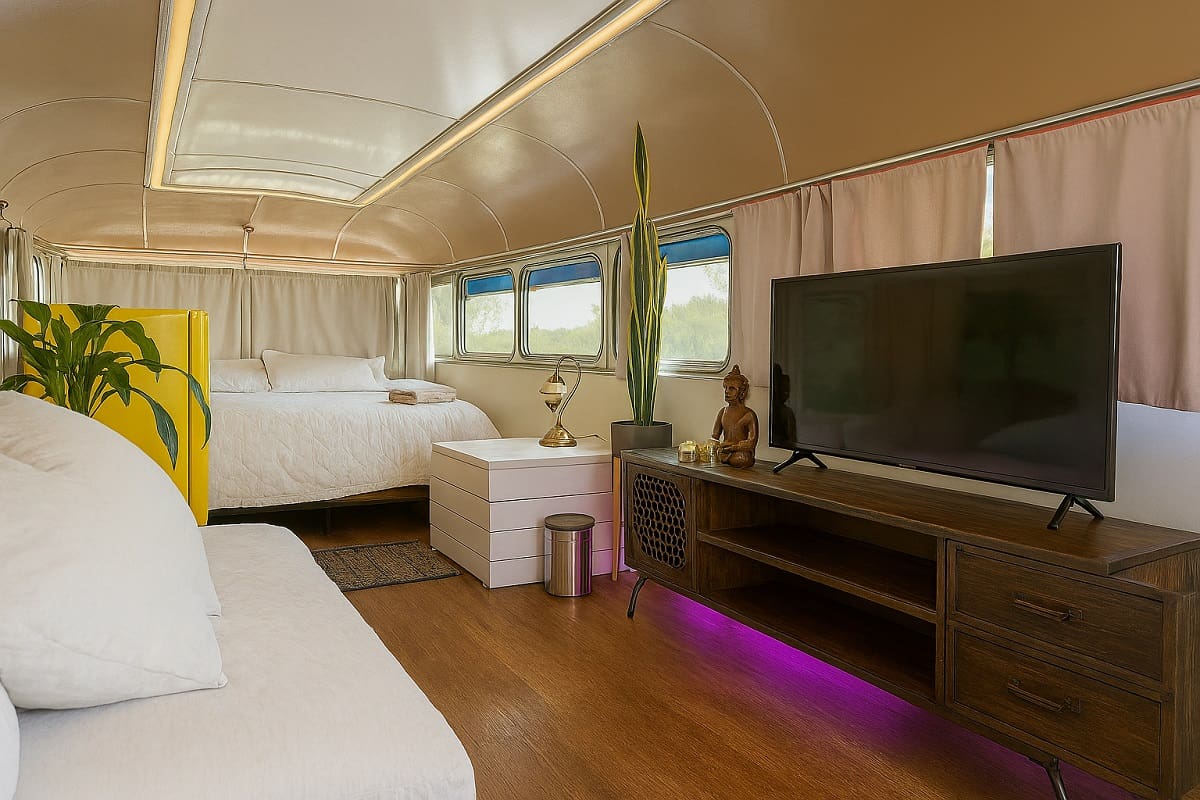 Los resultados pueden ser sorprendentes. Desde unidades de 12 metros que se convierten en casas completas con dormitorio y baño, hasta colectivos de dos pisos transformados en verdaderas viviendas de doble planta, con espacios compartidos y zonas de descanso bien definidas. Y lo más interesante es que no siempre se trata de casas en movimiento. Algunos proyectos se instalan de forma fija en terrenos, mientras que otros mantienen la posibilidad de viajar, fusionando la idea de hogar con la de libertad.