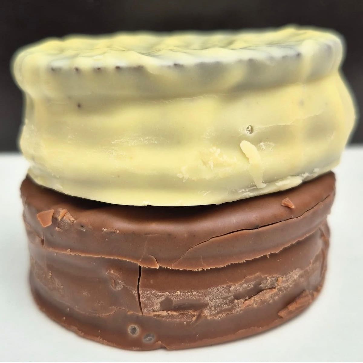 “Uno de sus fuertes, siempre fue la utilización de chocolate como cobertura, bueno aquí no es la excepción, por un lado chocolate con leche y por el otro lado chocolate blanco”, señalaron sobre la cobertura, resaltando la calidad que caracteriza a la marca.