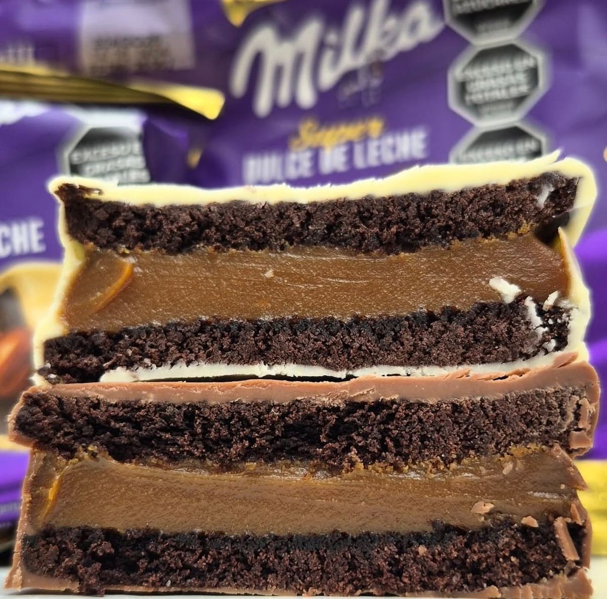 Por otro lado, la variante de chocolate con leche mantiene un perfil más clásico, aunque con el plus del relleno extra. “Acá hay bastantes similitudes con su par blanco, mismas galletas, misma terneza y misma intensidad, nuevamente encontramos mucho dulce de leche”, explicaron.