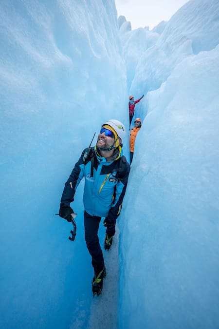A esta excursión se la conoce como Minitrekking y durante el paseo se entra en contacto directo con la superficie helada y se accede a zonas exclusivas del glaciar, explorando grietas profundas, divisando lagunas de un azul intenso, sumideros y, si el azar y la naturaleza acompañan, cuevas de hielo esculpidas por el tiempo y el viento patagónico.