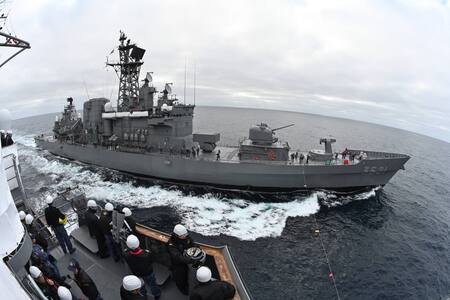 Los barcos militares Kashima y Shimanaze, navíos del escuadrón de entrenamiento de la la Fuerza Marítima de Autodefensa del Japón, llegan a la Argentina. La flota permanecerá en el Apostadero Naval de Dársena Norte.
