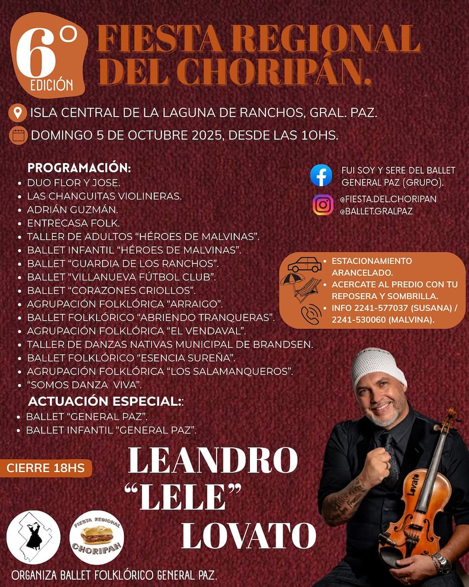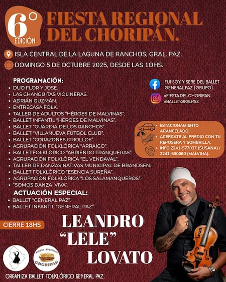 Entre los atractivos del evento, además de los deliciosos choripanes, habrá servicio de cantina, una feria con puestos de artesanos, emprendedores y reventa, y muchos artistas en escena, con la actuación estelar del músico Leandro “Lele” Lovato.