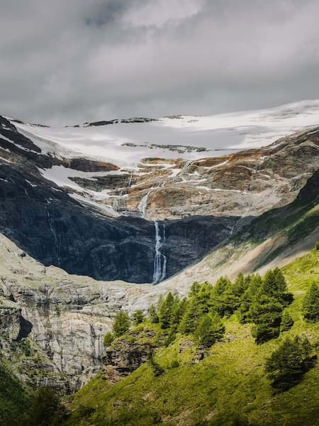 La travesía continúa hasta el Ospizio Bernina (Suiza), el punto más elevado de la línea. El entorno aquí cambia por completo: glaciares, formaciones rocosas y lagos alpinos dibujan un paisaje imponente. En verano se destaca el Lago Bianco, mientras que en invierno la nieve transforma todo en una postal mágica.