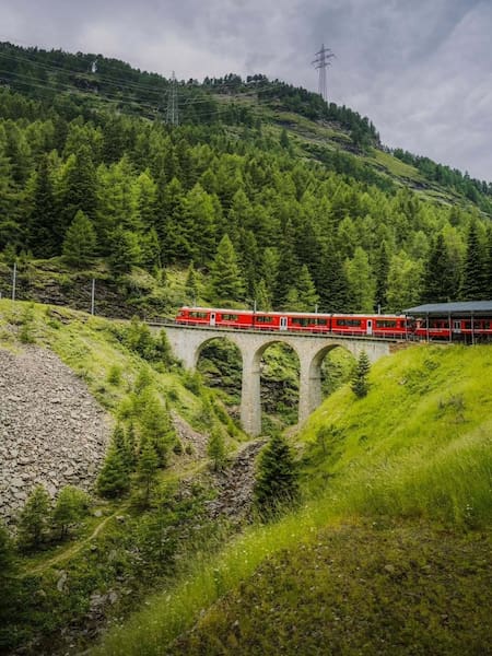Los trenes circulan en ambas direcciones, desde Chur o St. Moritz en Suiza hasta Tirano en Italia, con 25 paradas en el camino. Para aprovechar al máximo las emocionantes curvas, giros y paisajes, lo ideal es recorrer todo el trayecto de principio a fin.