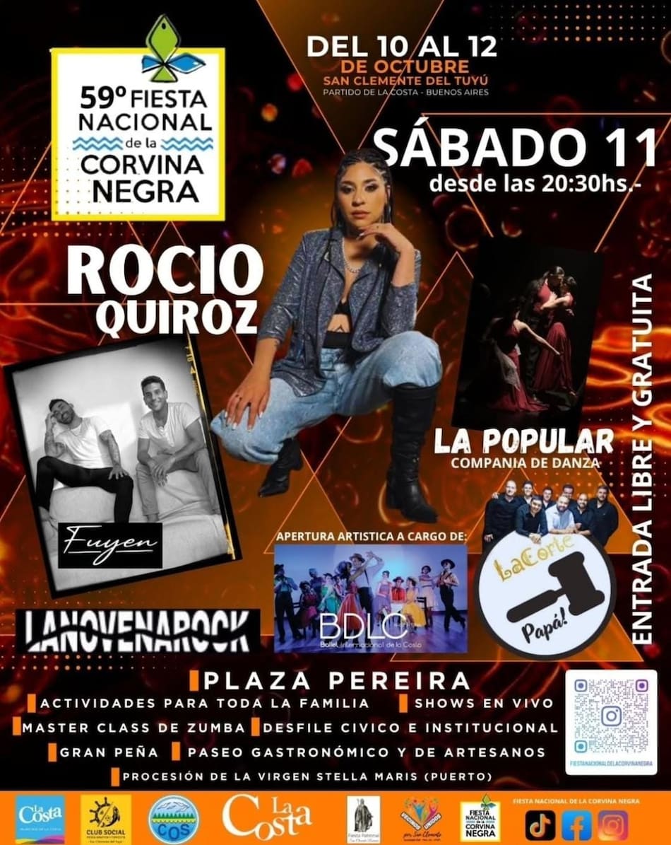 Entre todas las propuestas, San Clemente del Tuyú será el epicentro de una de las celebraciones más emblemáticas del calendario provincial: la Fiesta Nacional de la Corvina Negra, que este año cumple su 59ª edición. El evento se desarrollará entre el viernes 10 y el domingo 12 de octubre en la Plaza Pereira, con entrada libre y gratuita.