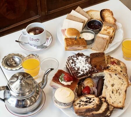 Su carta es amplia, pero el sello distintivo de Las Violetas son sus abundantes y sabrosas meriendas. Tanto es así que a las tardes siempre hay una fila de personas esperando para entrar a disfrutar de ellas.