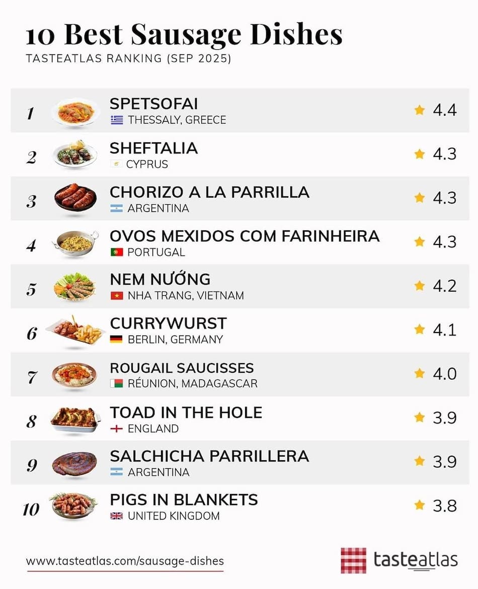 Top 10: los mejores “platos de salchicha” del mundo, según Taste Atlas