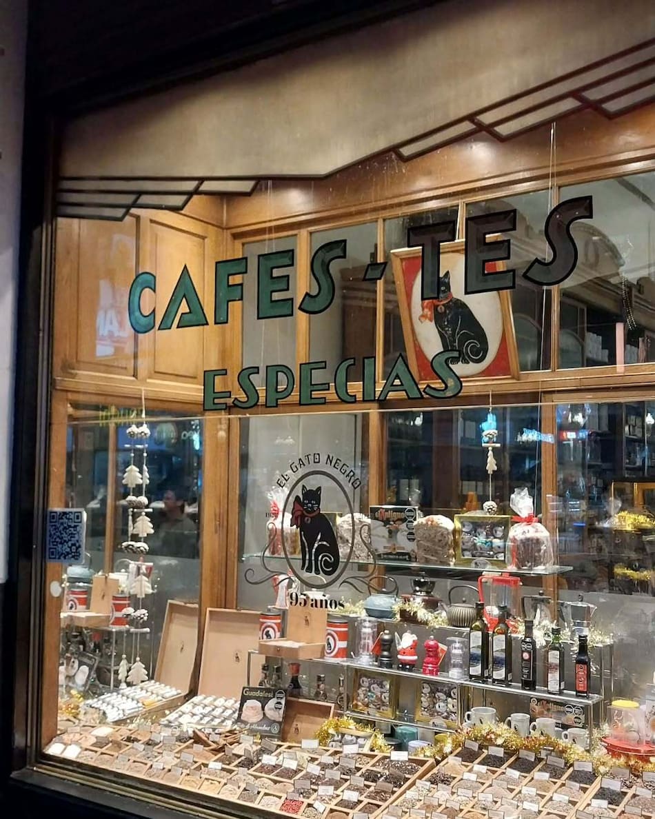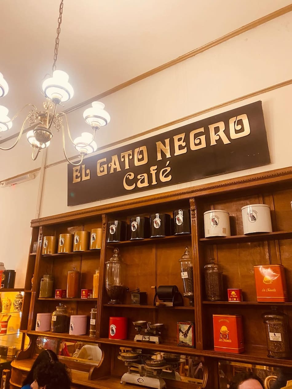 En el lugar, se pueden tomar tés, cafés y comprar especias de todo el mundo, rasgo que hace distintivo a El Gato Negro. Victoriano López, su fundador, vivió durante cuarenta años en Ceylán, en Singapur y las Filipinas, y viajaba por La Malasia y La Manchuria. ¿Qué otro local podría haber fundado?