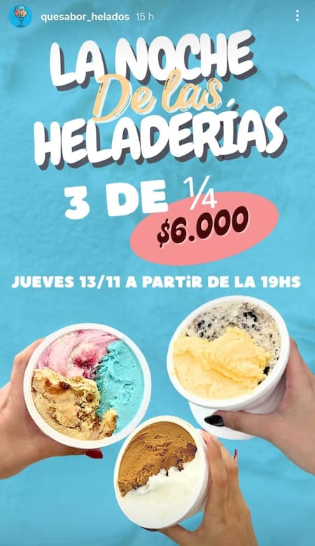 El beneficio principal estará disponible desde las 19:00 horas del jueves 13, en todos los locales adheridos del país. Entre las promociones más atractivas, se destaca una propuesta especial que ofrece tres cuartos de helado por $6.000, válida en una reconocida cadena con enorme presencia en el conurbano bonaerense llamada “Qué Sabor”.