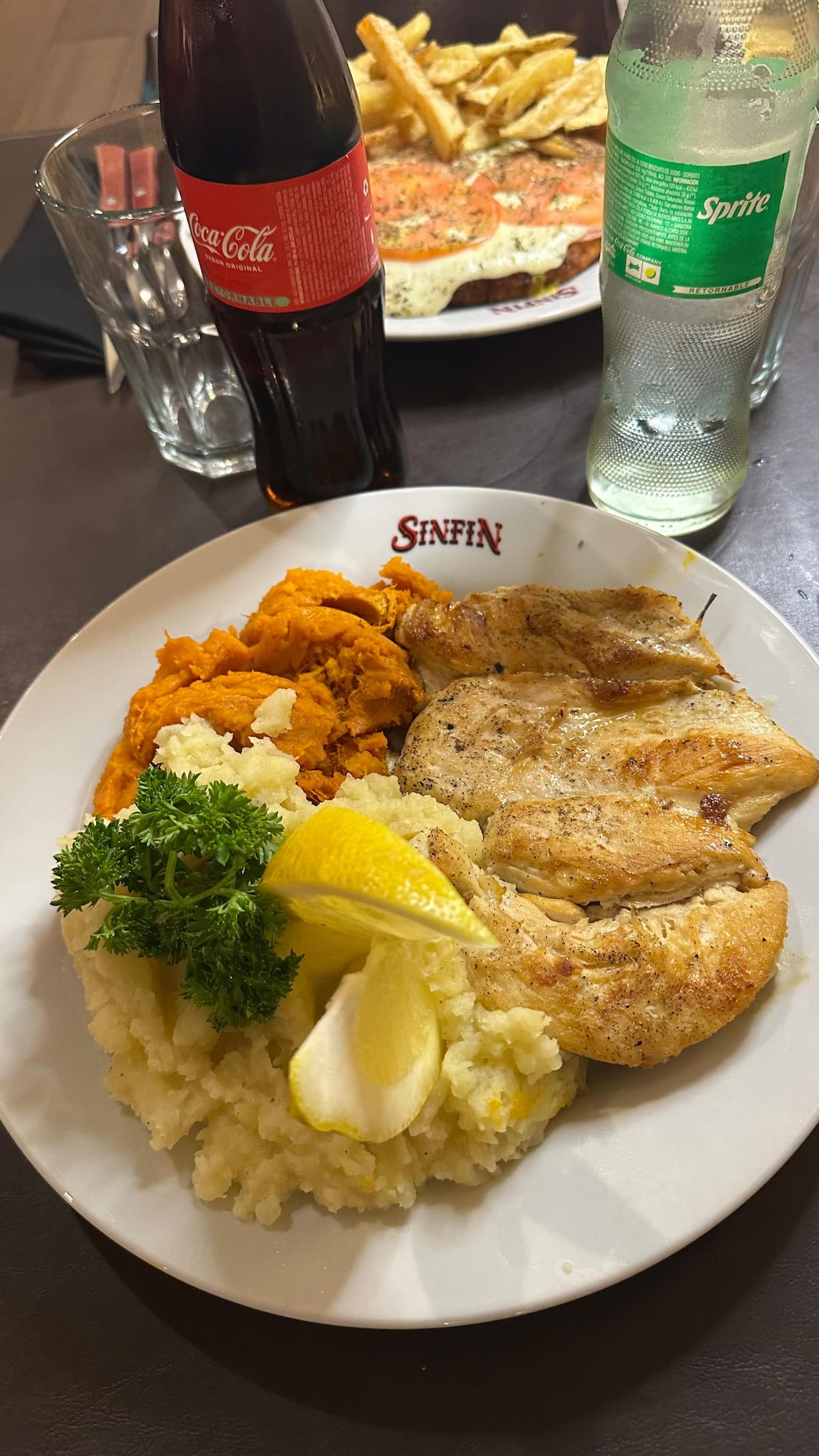 Uno de los platos que vuelve a Sinfin un bodegón único, es su tortilla rellena de jamón, queso y milanesa. También ofrecen fuentones de pasta como fetuccini con salsa de mariscos, mediterránea, bolognesa, entre otras opciones.