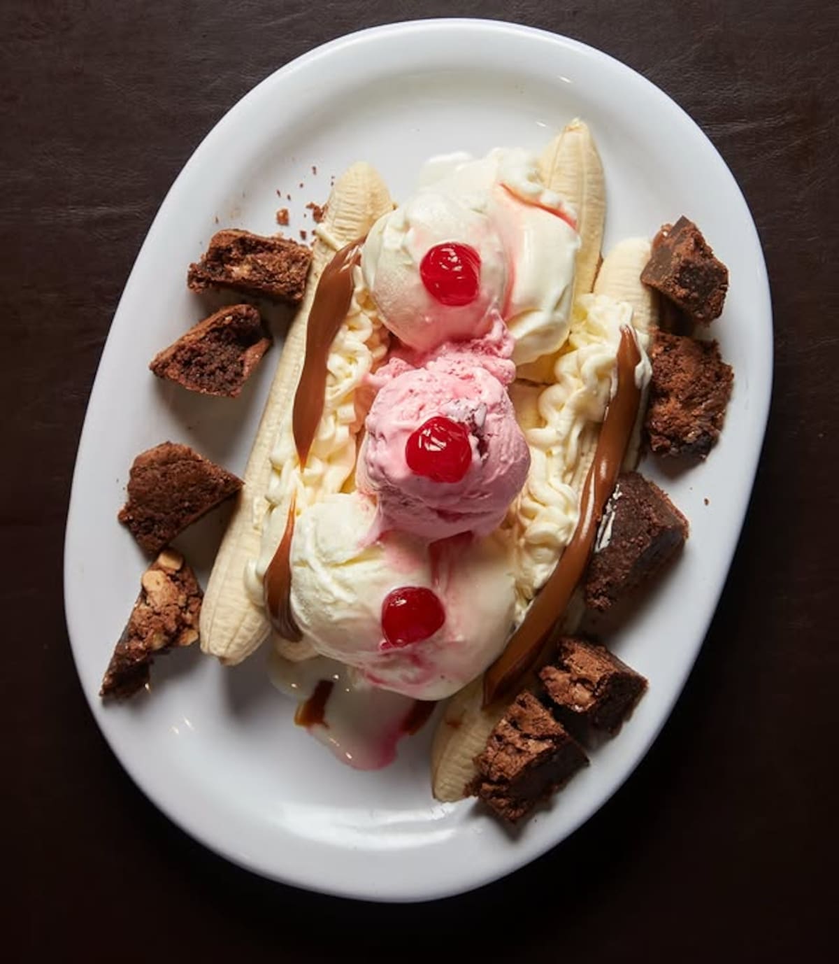 - Banana split Sinfin (banana x2, bochas de helado x3, brownie, crema charlotte, dulce de leche y cerezas): $15.000