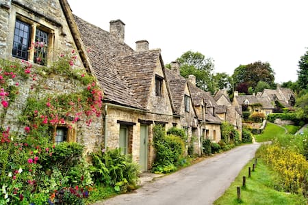 Ubicado en el condado de Gloucestershire, Bibury forma parte de una zona protegida como Área de Excepcional Belleza Natural. Se destaca de un paisaje sacado de un cuento o de una serie inglesa, ya que cuenta con casitas color miel, tejados cubiertos de musgo, jardines verdes y prolijos y un río que serpentea en silencio entre sauces y praderas.