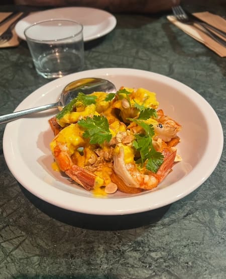 También ofrecen langostinos salteados con curry, summer rolls de trucha y vegetales, y el clásico bánh xèo: una crepe de harina de arroz rellena con hongos, brotes, hierbas y langostinos. Para beber, cuentan con cócteles clásicos, cervezas y vinos ligeros que acompañan perfecto la propuesta asiática.