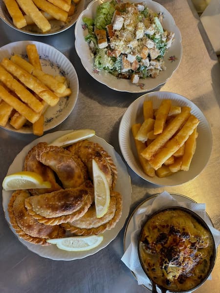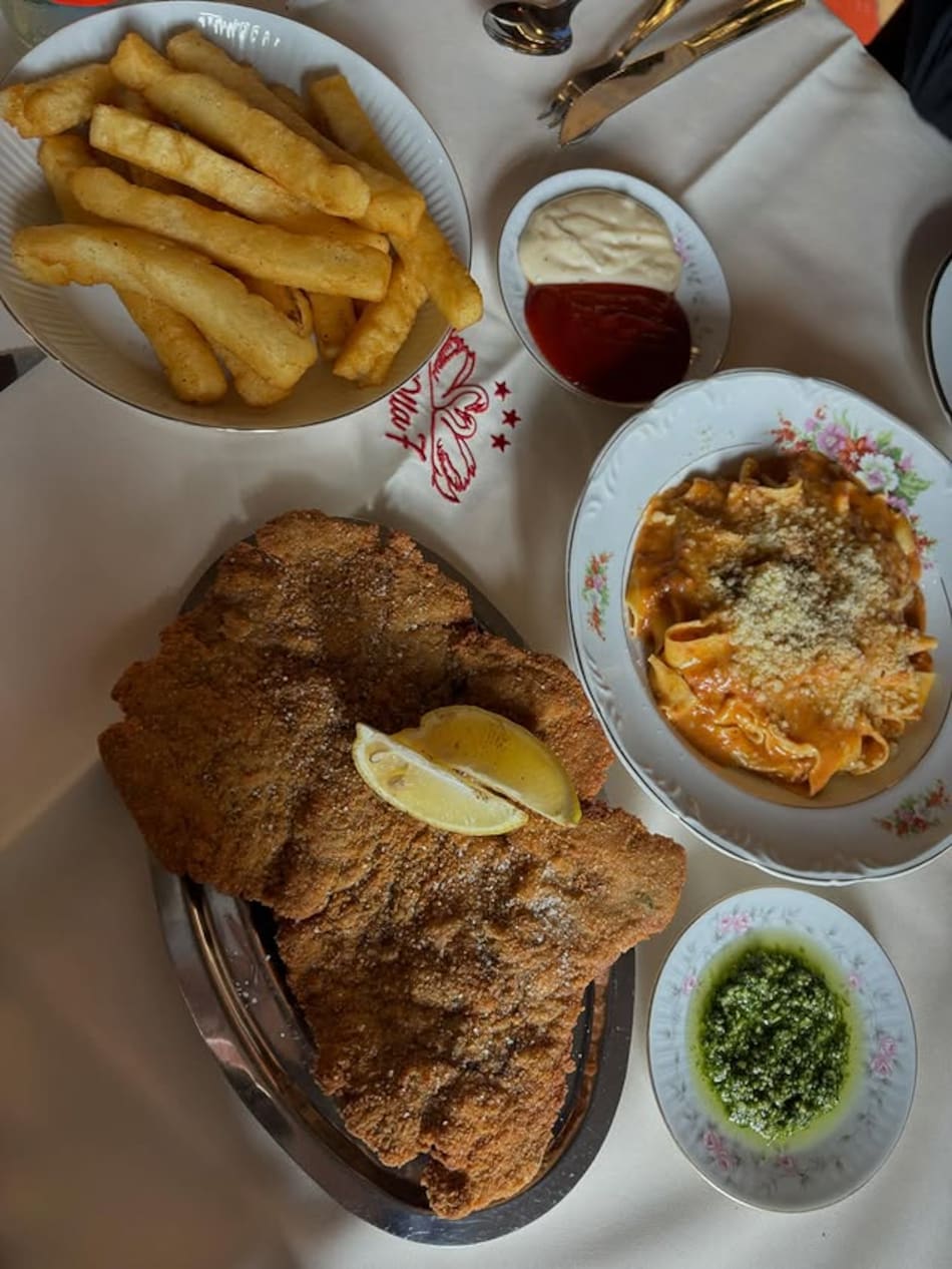 Además, se pueden pedir milanesas con papas fritas o puré, empanadas, pollo a las aceitunas, rabas y tortelloni rellenos de seso y verdura, servidos con manteca al limón, entre otras opciones.