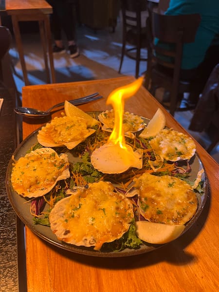 - Conchas a la parmesana ($30.400): dentro de las entradas calientes, este plato ofrece vieiras mariposa en pasta de ají amarillo y manteca japonesa, gratinadas con parmesano.