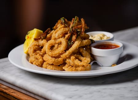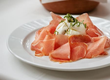 La propuesta comienza con un aperitivo de bienvenida y continúa con una entrada a elección entre Burrata con prosciutto, Mozzarella alla milanese, Rabas e zucchine fritte o Carpaccio di salmone.