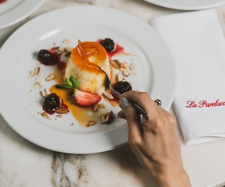 Para el postre, destacan el Flan de claras con confitura de naranja, la Merengatta con helado y frutillas, la Piccola torta di limone o el clásico Tiramisú al mascarpone.