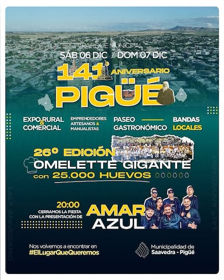 Se trata de la 26° edición del “Omelette Gigante de Pigüé”, que reúne a vecinos y recibe a miles de visitantes cada primer domingo de diciembre para disfrutar una preparación monumental, acompañada de actividades culturales y gastronómicas cargadas de tradición.