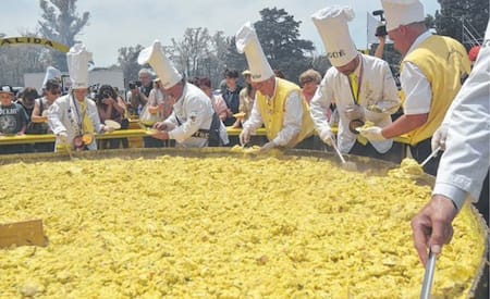 La fiesta del Omelette Gigante tiene la particularidad de preparar la receta con 25 mil huevos en un disco comunitario de cuatro metros de diámetro. Una vez finalizado, los organizadores reparten porciones individuales a los turistas de manera gratuita.