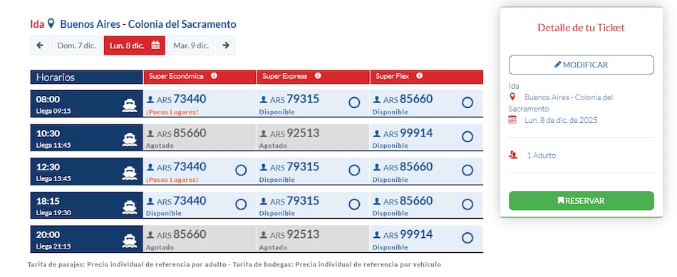 Cuánto sale viajar desde Argentina a Uruguay por Colonia Express