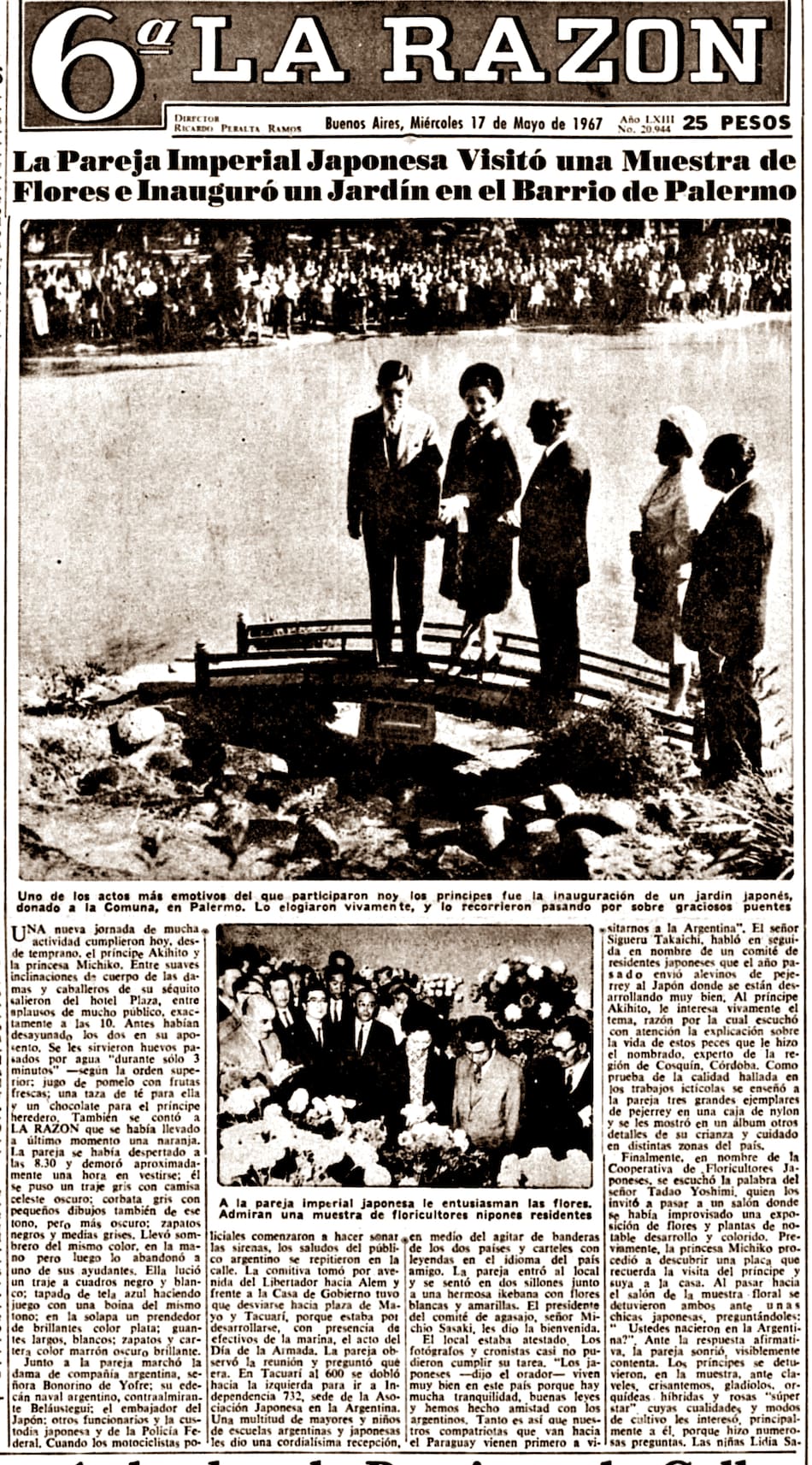 Finalmente, el 17 de mayo de 1967, los herederos al trono, acompañados por altos funcionarios y el embajador de Japón, inauguraron el predio. Tras la ceremonia, la Embajada donó el terreno al Gobierno de la Ciudad de Buenos Aires, sellando así el “puente perdurable” entre las dos culturas.