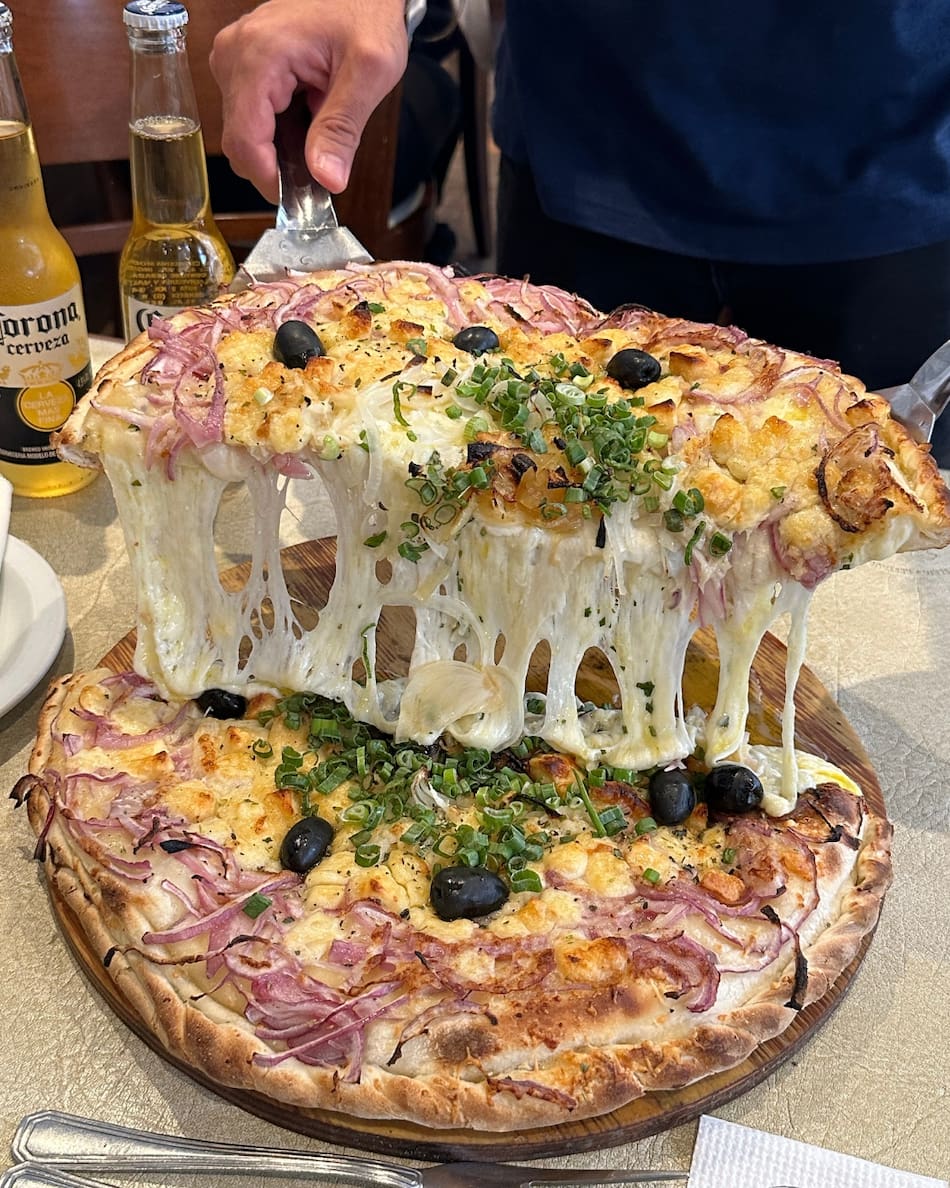 Su especialidad es la de 7 quesos, pero no es la única, ya que cuenta con decenas de opciones que la vuelven un infaltable en la lista de restaurantes de visita obligada en la Ciudad. En sus pizzas, no puede faltar el queso gratinado, los rellenos y la doble masa.