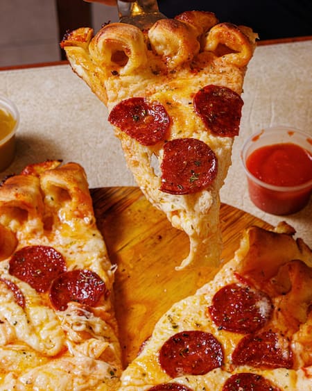 - Pizza Bordiz: 1 kilo de muzzarella y pepperoni. Los bordes están rellenos de mozzarella y viene con salsitas para mojar de fileto, cheddar y mostaza