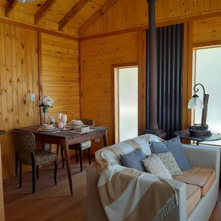 Los Dos Vagones ofrece alojamiento en dos vagones reciclados, un mini vagón y un loft, en medio de 21 hectáreas para disfrutar de la naturaleza. El predio cuenta con una laguna con muelle y bote, bosque añoso, monte frutal y un amplio parque ideal para parejas, grupos de amigos o familias de adultos. Además, se pueden utilizar salones y una carpa para eventos, todo atendido por sus dueños y abierto durante todo el año.