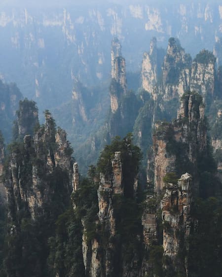 Este enorme parque nacional de China es tan impactante que parece irreal. Está repleto de columnas de piedra que superan los 200 metros de altura y se elevan desde el suelo como si flotaran en el aire, en un paisaje que parece sacado de una película de ciencia ficción.