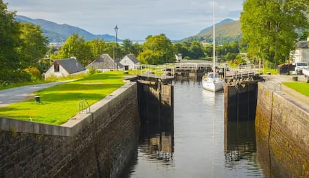 Se trata del Canal de Caledonia, ubicado en las Highlands, las Tierras Altas de Escocia, que finaliza en la localidad de Fort Augustus. Allí, un sistema de esclusas de menor envergadura permite el paso de las embarcaciones hacia el famoso Lago Ness, conocido por su valor paisajístico y turístico, pero también por la leyenda del supuesto monstruo que, según relatos de los lugareños, habita en sus aguas.