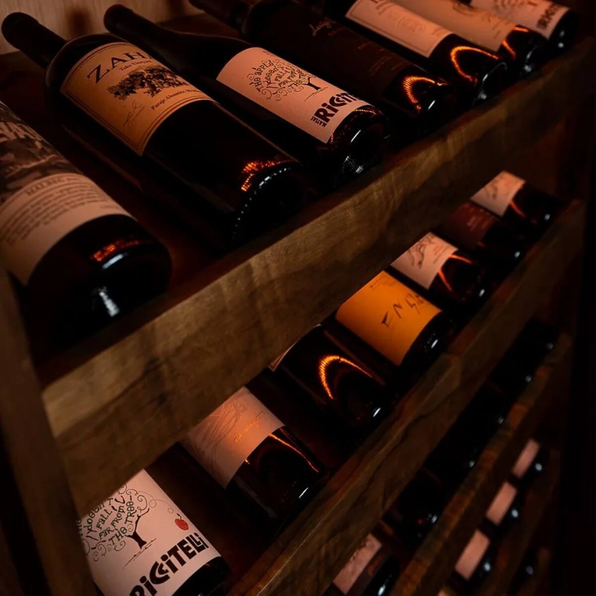 La carta de vinos prioriza etiquetas de pequeñas bodegas y proyectos poco difundidos, seleccionados especialmente para acompañar el ritmo de una cena prolongada.