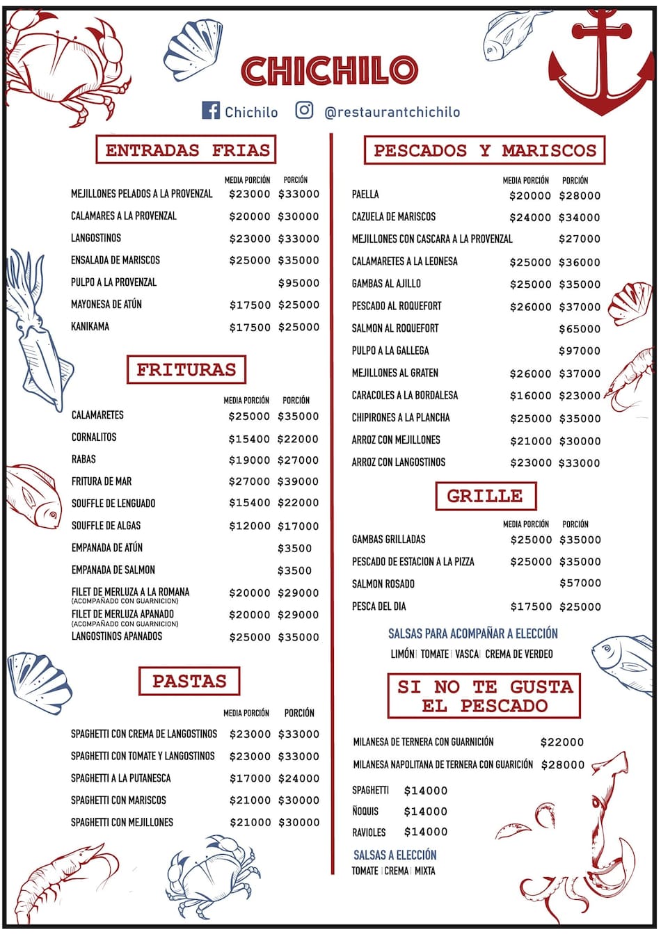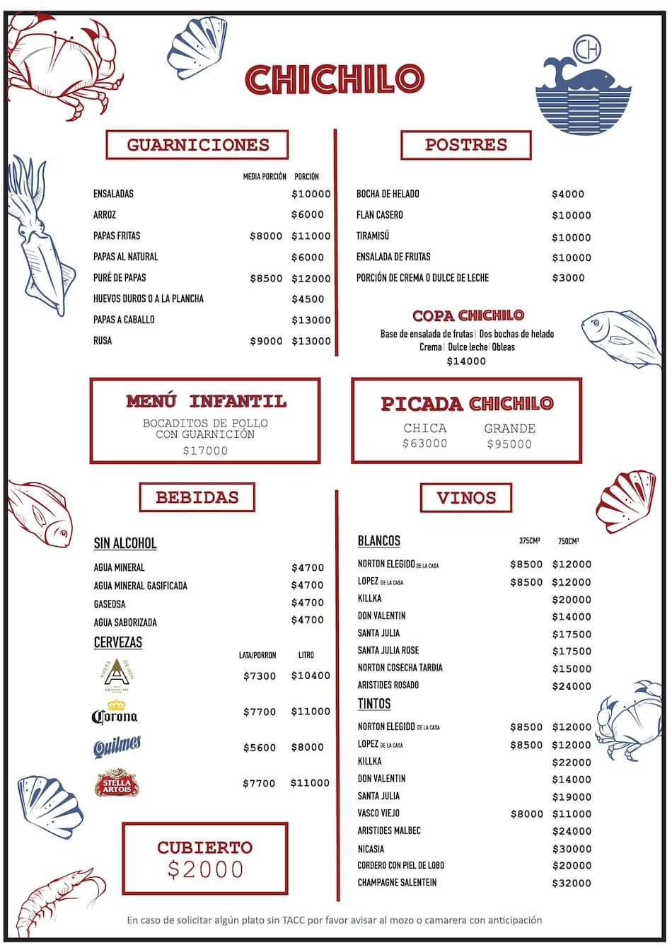 En diciembre de 2025, algunos de los platos más pedidos de Chichilo tienen los siguientes precios: