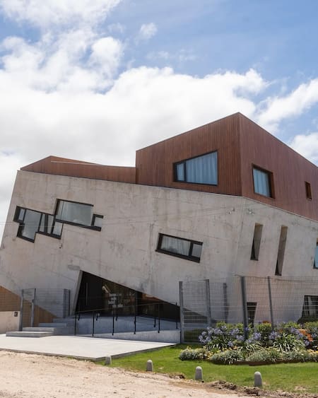 Se trata de Locus Solus, un hotel ubicado en los Acantilados del Sur que impacta a primera vista por su diseño: un volumen de hormigón y vidrio inclinado hacia el océano, como si toda la estructura buscara fundirse con el mar.