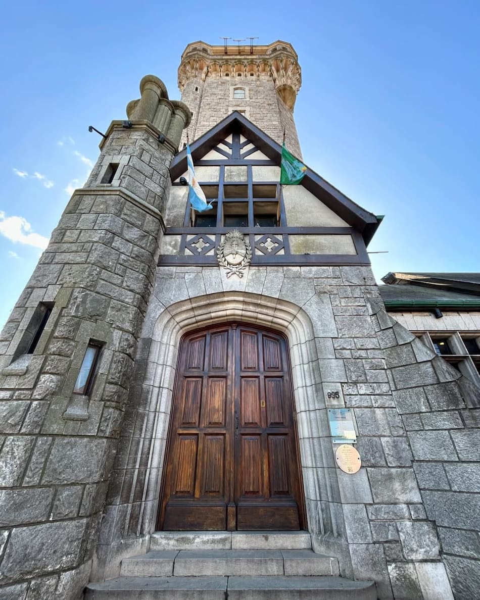 De estilo Tudor, pintoresquista de inspiración nórdica, el edificio fue ejecutado con piedra concertada en el subsuelo y planta baja, y el resto en piedra trabajada a punta gruesa y punta fina. La cubierta de la Torre, materializada en pizarras, se resuelve a cuatro aguas, con los pares de faldones opuestos de dimensiones iguales. En las esquinas de remate curvo, la cubierta se articula mediante 10 pendientes de las cuales 8 son iguales.