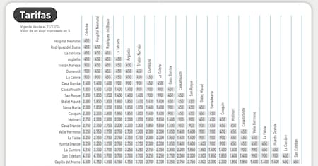 Los precios actualizados del Tren de las Sierras, en enero 2026, se pueden consultar en el sitio web de Trenes Argentinos y los valores detallados. para recorrer las distintas localidades del Valle de Punilla, se detallan a continuación.