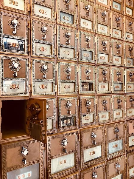 El lugar es pequeño pero acogedor. Tiene pocas mesas, cómodas sillas de cuero y una pared cubierta de estanterías donde se destacan las 90 casillas de correo de madera. Entre ellas, una cita enmarcada de Alicia en el país de las maravillas, de Lewis Carroll, resume el espíritu del espacio: “El secreto, querida Alicia, es rodearse de personas que te hagan sonreír el corazón”.