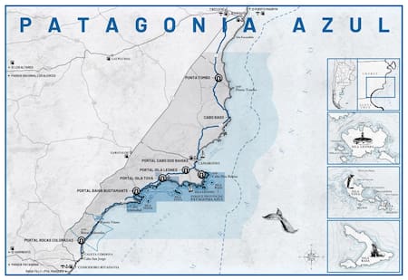 El recorrido atraviesa cuatro portales de acceso público, dos Pueblos Auténticos, dos Parajes Históricos y cuatro áreas naturales protegidas, todos unidos por la Ruta Escénica Provincial 1, conocida como la Ruta Patagonia Azul.
