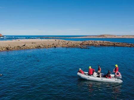 Un área protegida reconocida por su geografía volcánica y su fauna marina. Pingüinos, lobos marinos y aves conviven en un paisaje de acantilados rojizos que caen al mar.