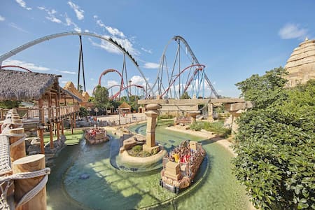 PortAventura World tiene 105 hectáreas y es el mayor complejo del sur de Europa. El parque ofrece más de 40 atracciones, entre ellas la hipercóaster Shambhala, el acelerador vertical Red Force en Ferrari Land y el tobogán acuático King Khajuna en Caribe Aquatic Park.