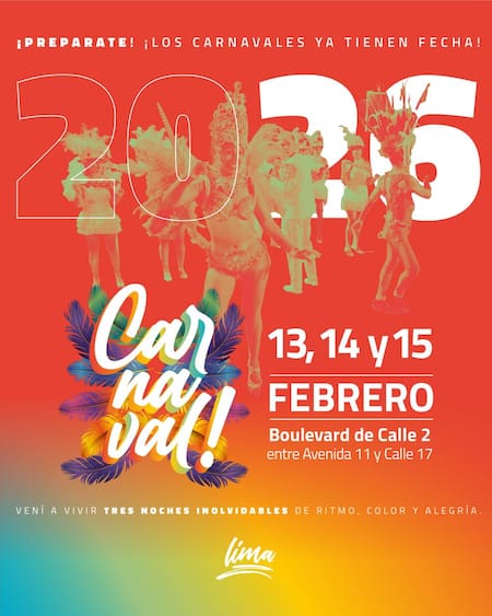 Los Carnavales 2026 de Lima ya tienen fecha: 13, 14 y 15 de febrero serán tres días a pura murga y comparsas en el Boulevard de Calle 2, entre Avenida 11 y Calle 17, en Lima, Partido de Zárate, en la provincia de Buenos Aires.
