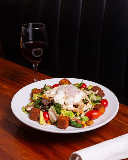 - CHICKEN CAESAR SALAD (Lechuga fresca de estación, crutones, lonchas de pollo rebozados o con fetas de pollo grilladas y queso reggianito con aderezo Caesar): $25.500