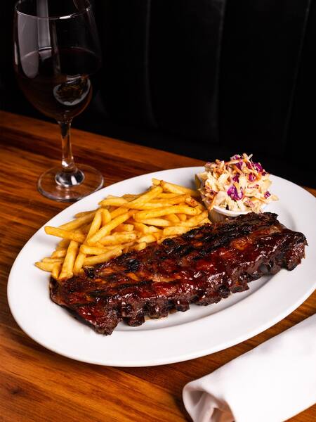 - RIB EYE STEAK 400g (Ojo de bife grillado a la leña, acompañado con papas fritas): $47.800
