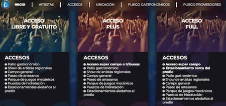 La entrada general es gratuita y permite acceder al campo principal, espectáculos regionales y espacios recreativos. Sin embargo, quienes deseen una ubicación preferencial podrán optar por dos modalidades: