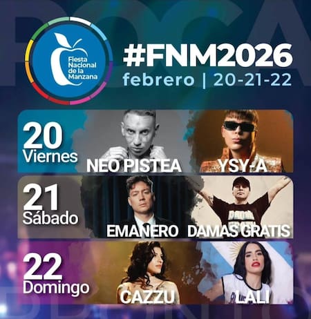 La ciudad de General Roca volverá a convertirse en el epicentro cultural y musical de la Patagonia con una nueva edición de la Fiesta Nacional de la Manzana, que se desarrollará del 20 al 22 de febrero de 2026.